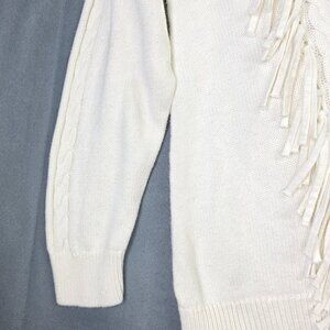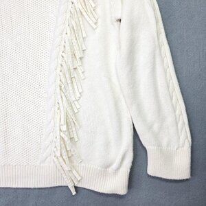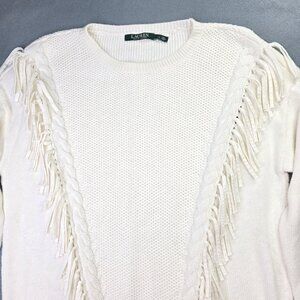 Lauren Ralph Lauren Sweater Womens Large Ivory Fringe Cable Knit Cotton Boho