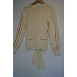 Lauren Ralph Lauren Sweater Womens Medium Ivory Belt Tie Balloon Sleeve Knit