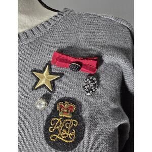 Lauren Ralph Lauren Sweater Women's Small Gray Military Inspired Embellishments