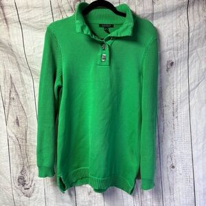 Lauren Ralph Lauren Sweater Womens XL Green Tunic Pullover Metal Buttons Mock