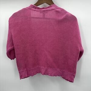 Lauren Ralph Lauren Sweater Womens XL Pink Knit Linen Blend Short Open