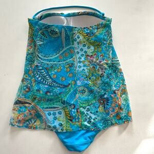 Lauren Ralph Lauren Swim Blue Paisley Flyaway Bandeau One Piece Swimsuit Size 4