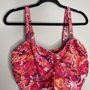 Lauren Ralph Lauren Swimdress Womens 18W Plus Pink Floral Skirted Bandeau Cruise