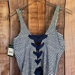 Lauren Ralph Lauren Swimsuit Painterly Stripe One Piece Size 16 Slimming NWT