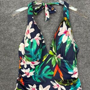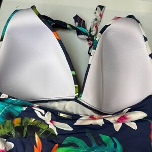 Lauren Ralph Lauren Swimsuit Womens 16 Blue Floral One Piece Halter Tie Padded