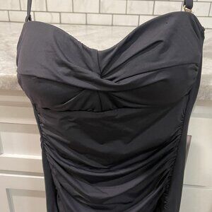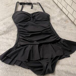 Special notes: New with original hang tag attached; classic black swimdress style suitable for resort, pool, or beach wear.