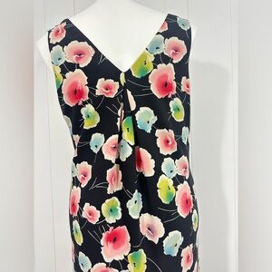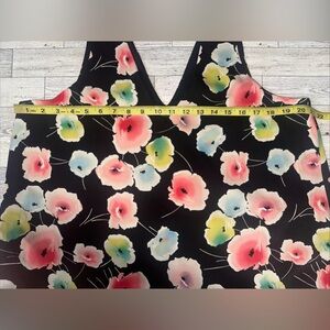 Lauren Ralph Lauren Sz 14 Mini Dress Tunic Black Floral V Neck Side Pockets