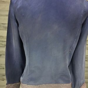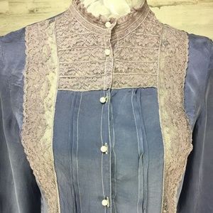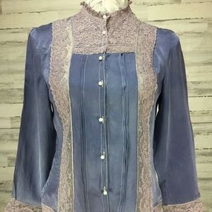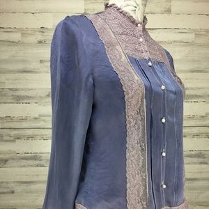 Lauren Ralph Lauren Sz 6P 100% Silk Purple Pearl Button Up Shirt Lace Trim