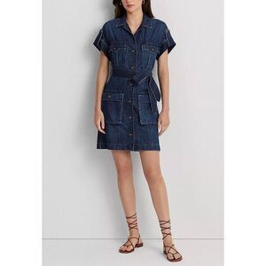 Lauren Ralph Lauren Sz 6P Belted Denim Shirt Dress Atlas Wash Short Sleeve
