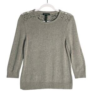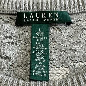 Lauren Ralph Lauren Sz L Lace Neck Pullover Crewneck Sweater Slits Neutral Modal