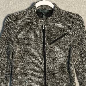 Lauren Ralph Lauren Sz S Full Zip Tweed Boucle Moto Jacket Mock Neck Zip Pockets
