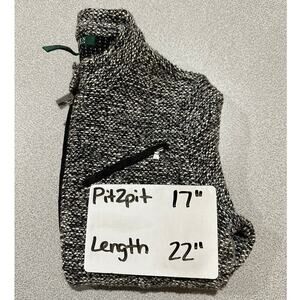 Details: Full Zip, 3 front zip pockets, long sleeve, mock neck with 2 snaps at neckline, stretchy acrylic polyester cotton blend