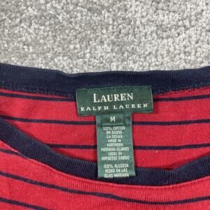 Lauren Ralph Lauren T Shirt Womens Medium Nautical Stripe Pocket Red Blouse