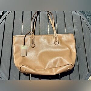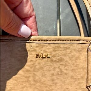 Lauren Ralph Lauren Tan Epi Leather Zip Top Shoulder Tote RL