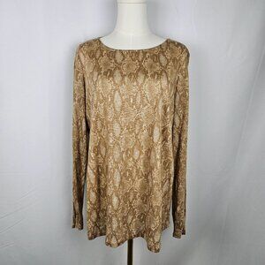 Lauren Ralph Lauren Tan Python Print Linen Knit Top 1X Snake Print