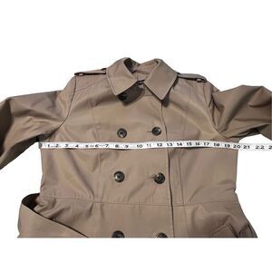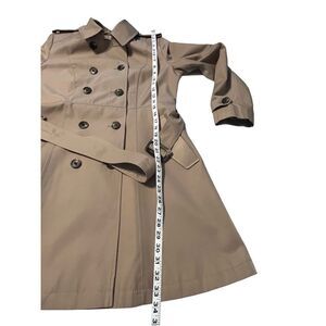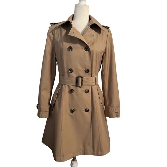 Classic tan trench coat. Double-breasted with belt. Timeless design.