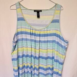 Lauren Ralph Lauren Tank Top Dress 1X Cotton Stretch Stripped Embroidered Logo