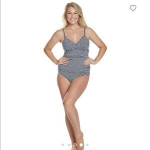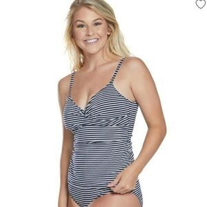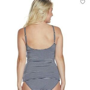 Lauren Ralph Lauren Textured Stripe Underwire Surplice Tankini Top Navy Sz 4