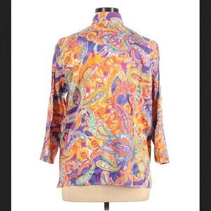 Lauren Ralph Lauren Top 1X Button Down Boho Print Paisley Summer Colorful Preppy