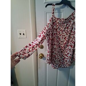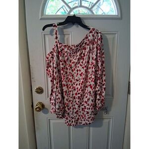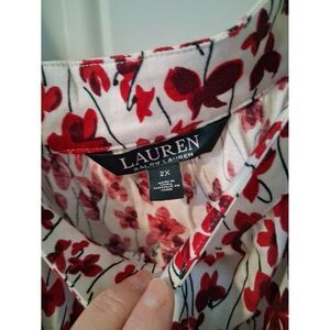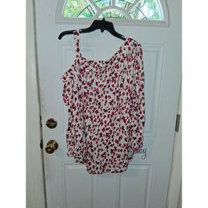 Lauren Ralph Lauren Top 2X White Red Floral One Shoulder Long Sleeve
