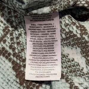Features: long sleeve, button up, snakeskin print, front pockets, collar