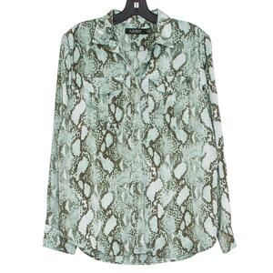 Lauren Ralph Lauren Top Academia Cottage Quiet Luxury Boho Snake Button Up PL
