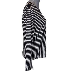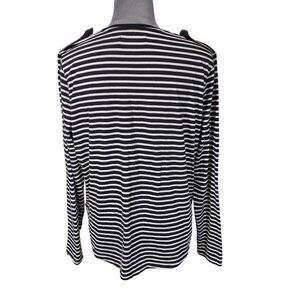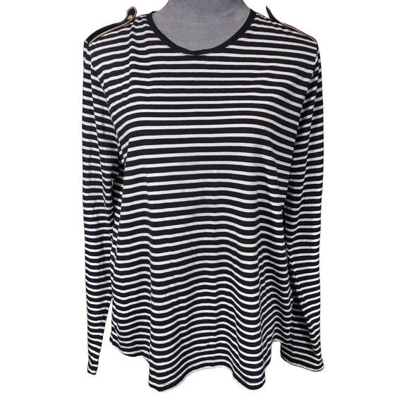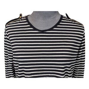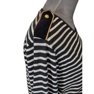 Lauren Ralph Lauren Top Black Striped Scoop Neck Pullover Epaulettes Shirt Large