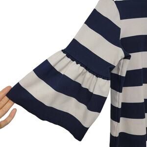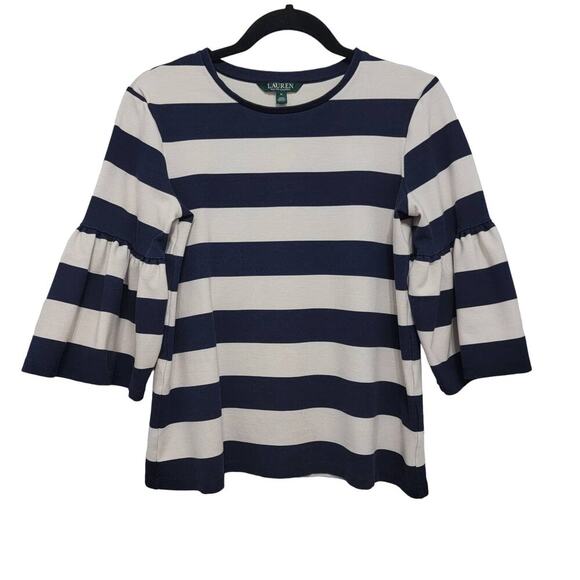 Lauren Ralph Lauren Top Medium Coastal Nautical Striped Bell Sleeve 607 *FLAW*
