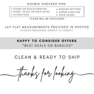 Close up of tags and measurements provided in photos.