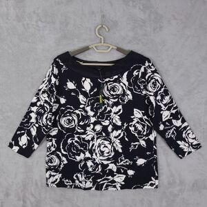 Lauren Ralph Lauren Top Tunic Women Floral 2X Lace Trim Boat Neck 3/4 Sleeve NWT