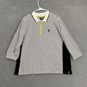 Lauren Ralph Lauren Top Women 2X Black White Striped 1/4 Zip Active Polo