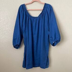 Blue Linen Balloon Sleeve Tunic Top Lauren Ralph Lauren 3X