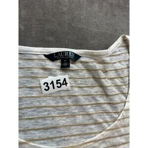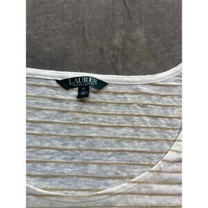 Lauren Ralph Lauren Top Womens Size 3X Tan White Striped Short Sleeve Pull Over