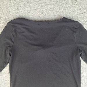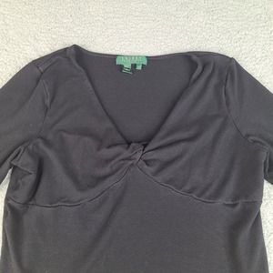 Lauren Ralph Lauren Top Women's Size P/L Basic Black Solid Cotton V-Neck Petite