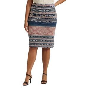 Lauren Ralph Lauren Plus Size Geometric Striped Pencil Skirt Size XL NWT. Pull-on style, elasticized waist. Pencil silhouette. Unlined. Woven geometric-stripe motif throughout. Imported. Linen/ cotton. Hand wash or dry clean.