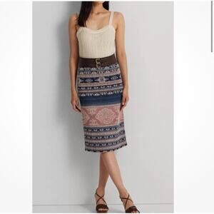 Lauren Ralph Lauren Tribal Aztec Geometric Striped Pencil Skirt Size XL NWT