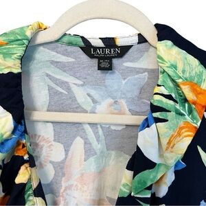 Lauren Ralph Lauren Tropical Print Wrap Front Tie Waist Top Black Multi Size XL
