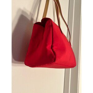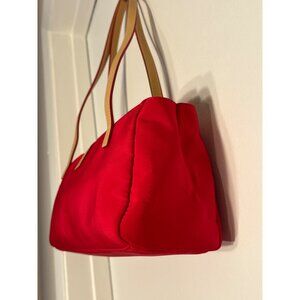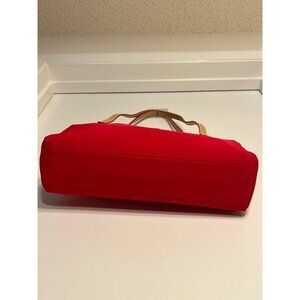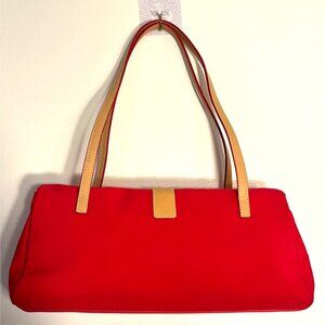 Lauren Ralph Lauren True Red Nylon Pochette Shoulder Bag Tan Straps Logo Buckle