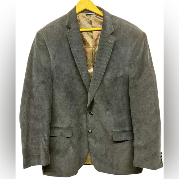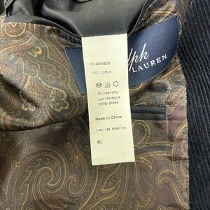 Lauren Ralph Lauren Two-Button Black Corduroy Mens Blazer Suede Elbow Patch 46L