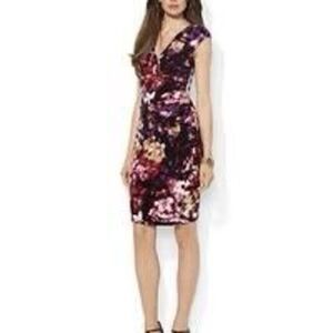 Lauren Ralph Lauren V Neck Empire Waist Floral Sheath Dress Career, Wedding Gues
