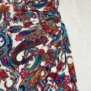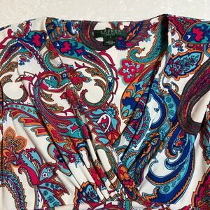 Lauren Ralph Lauren V-Neck Cap Sleeve Paisley Print Ruched Sheath Dress Size 2