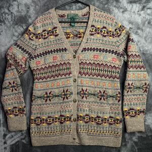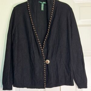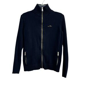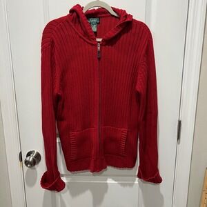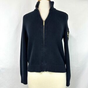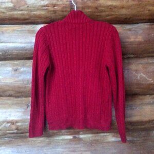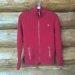 Lauren Ralph Lauren VTG Red Cable Knit Monogram Signature Zip Preppy Cardigan PL