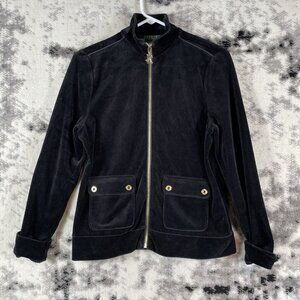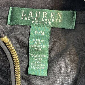 Lauren Ralph Lauren Velour Jacket Womens Size PM Black Cotton Polyester