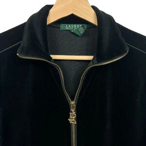 Lauren Ralph Lauren Velour Sweater Jacket Womens Size Small Black Full Zip