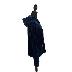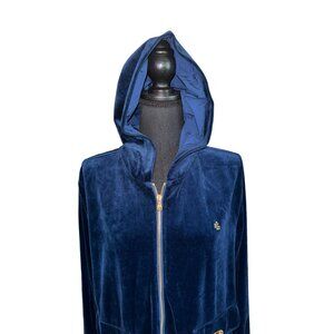 Lauren Ralph Lauren Velour Velvet Hoodie Sz Lg Royal Blue Gold Zip Classic Logo