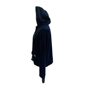 This Lauren Ralph Lauren velour hooded jacket is an ideal choice for women seeking a stylish yet comfortable outerwear piece. Designed with a zip-up front and two front pockets, it combines practicality and fashion. The luxurious velour fabric provides warmth and elegance, making it a versatile addition to any wardrobe.