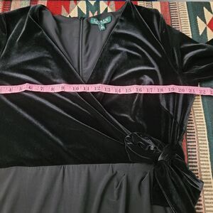 Lauren Ralph Lauren Velvet Faux Wrap Sheath Dress Sz 16 Black Modest Wedding