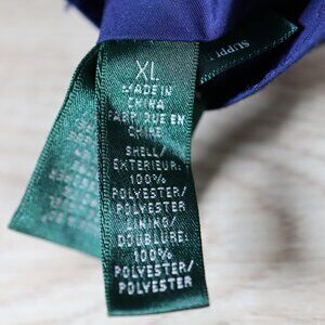 Features: Reversible design with navy/yellow sides; full zip front; stand collar; hand pockets with LRL-branded snaps; elasticized hem