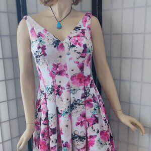 Lauren Ralph Lauren Vibrant Floral Pleated Dress Fit & Flare Sz 6 Feminine!