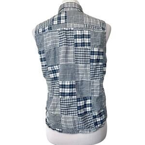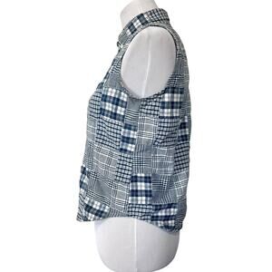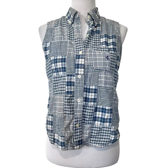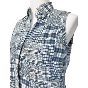 Lauren Ralph Lauren Vintage Plaid Patchwork Top Button Up Sleeveless Blue Sz 10P